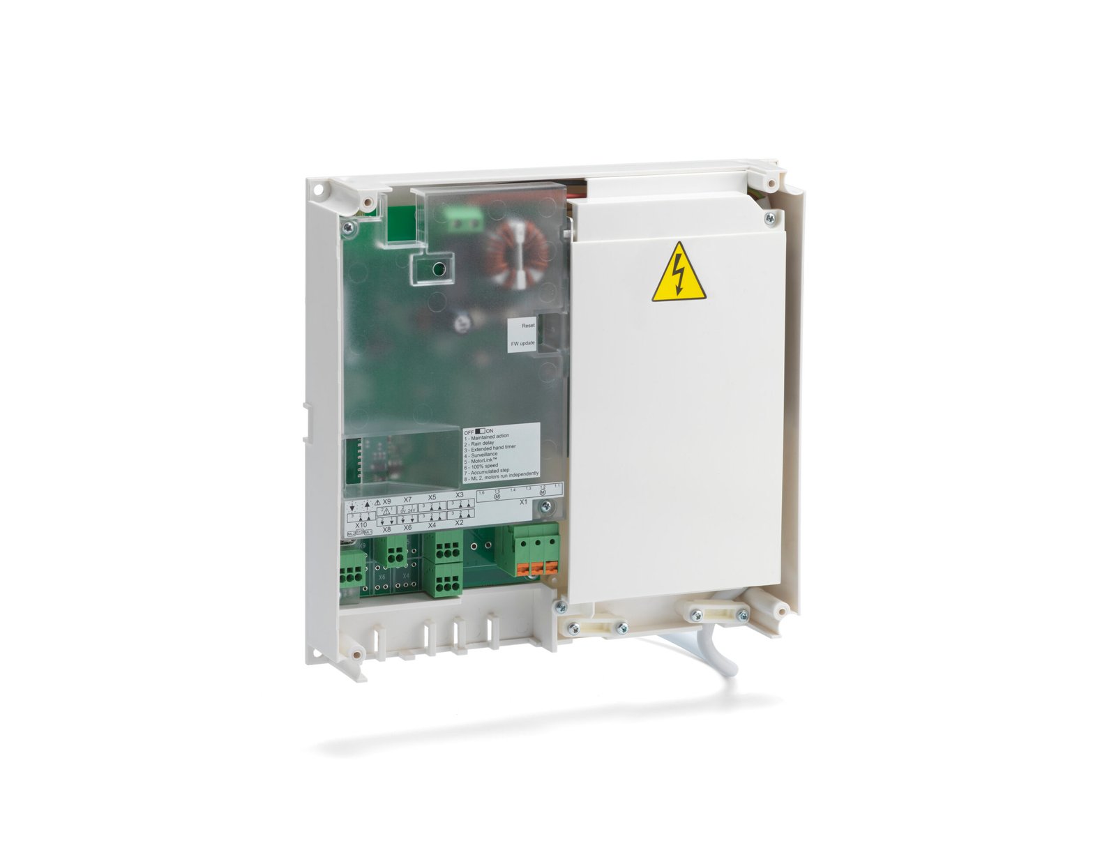Der MotorController steuert (öffnet/schließt) die Fensterantriebe anhand des Signals der angeschlossenen Komponente(n), z. B. Lüftungstaster (Bedienfeld), Raumsensor und Wettersensor.